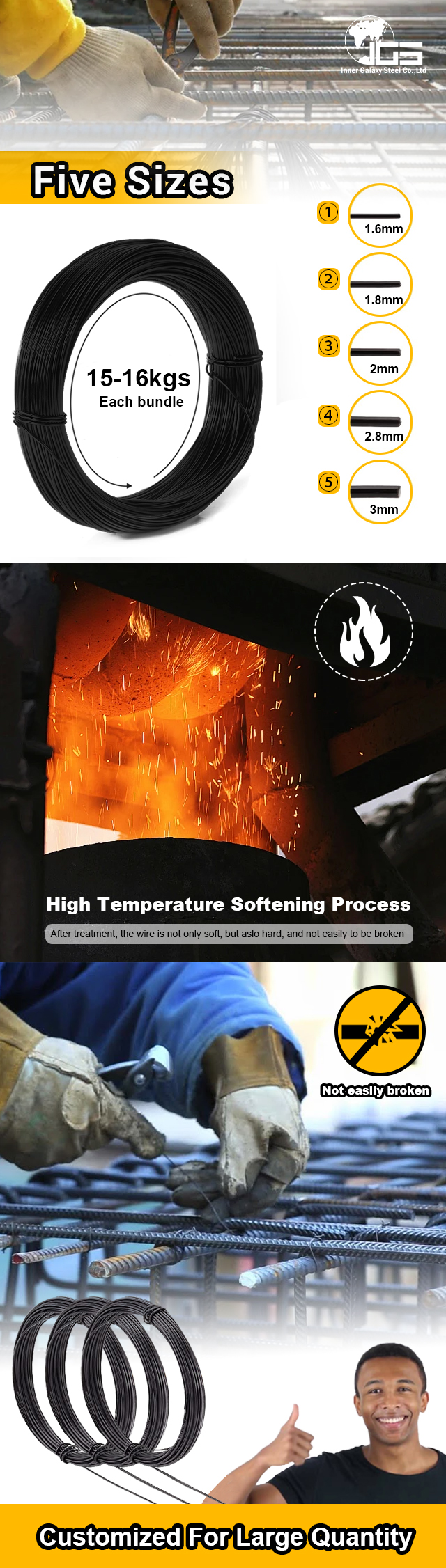 17kgs, 1.6inch Black Rolled Steel Wires for Lagos/Abuja